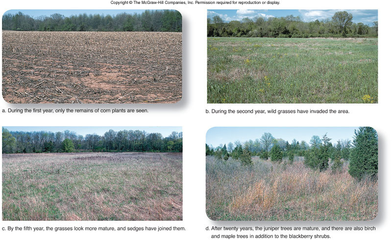 The Piedmont area supports a patchy landscape of pine and hardwood forests and agricultural fields and so abandoned crops represent ideal systems to study secondary succession Fig. Primary ecological succession occurs when native species take over abandoned farm fields. Ecological succession is the gradual development of communities of living organisms over time.